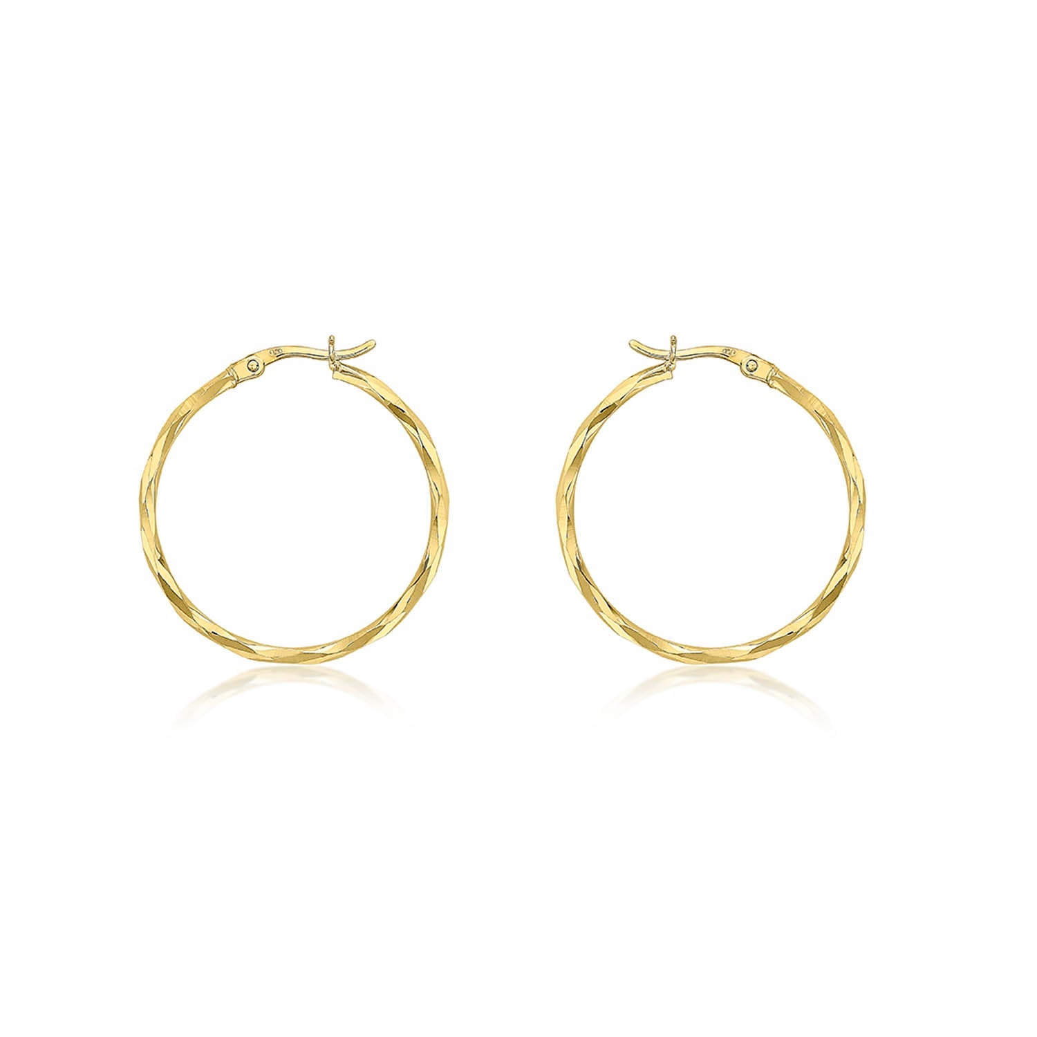 The 9ct Yellow Gold Diamond Cut Hoop Earrings (28mm) from Alexander Jewellers Australia embody refined elegance and everyday versatility. Expertly crafted in solid 9ct yellow gold, these hoops feature a diamond-cut finishthat catches the light beautifully, creating a shimmering effect that enhances every look.