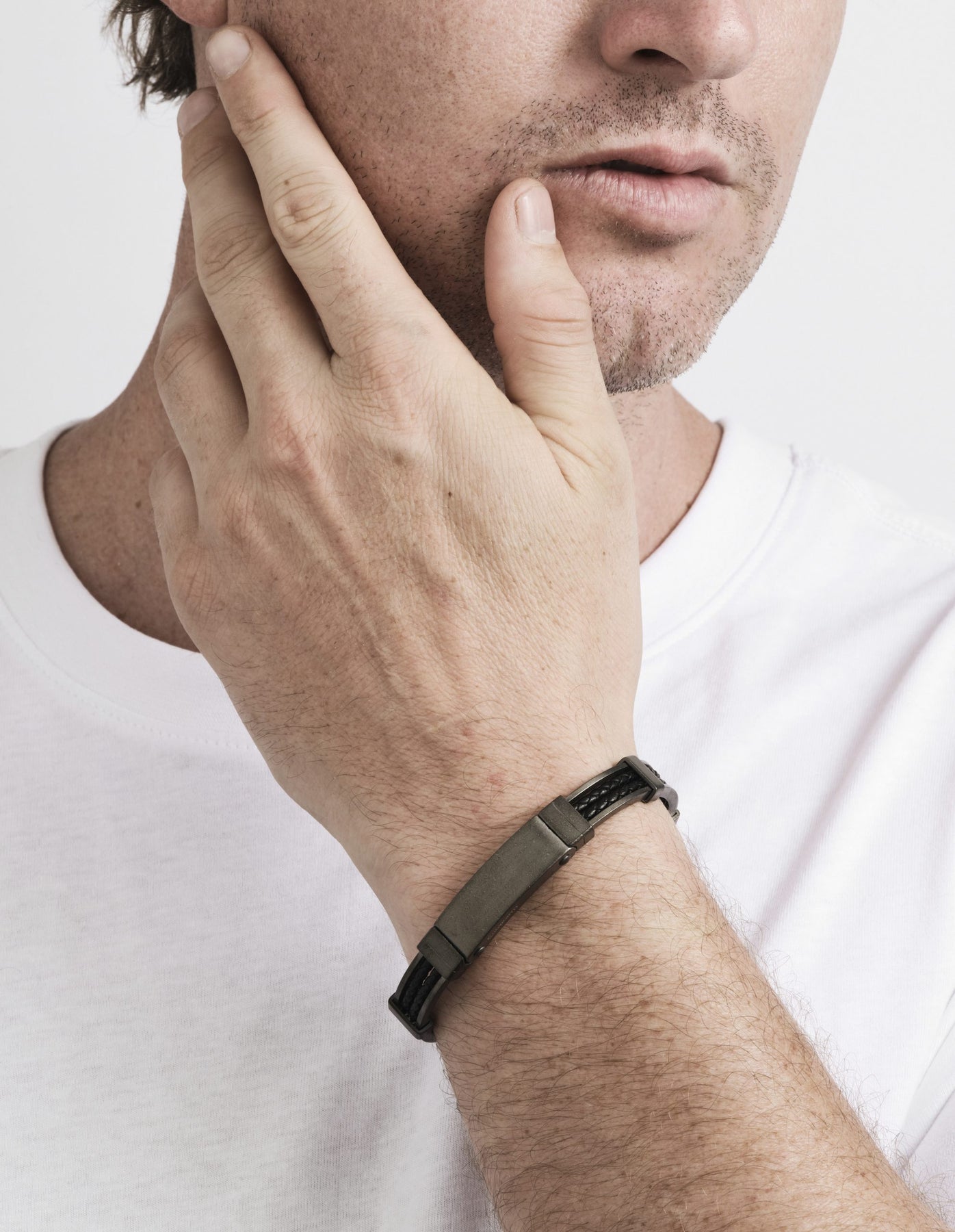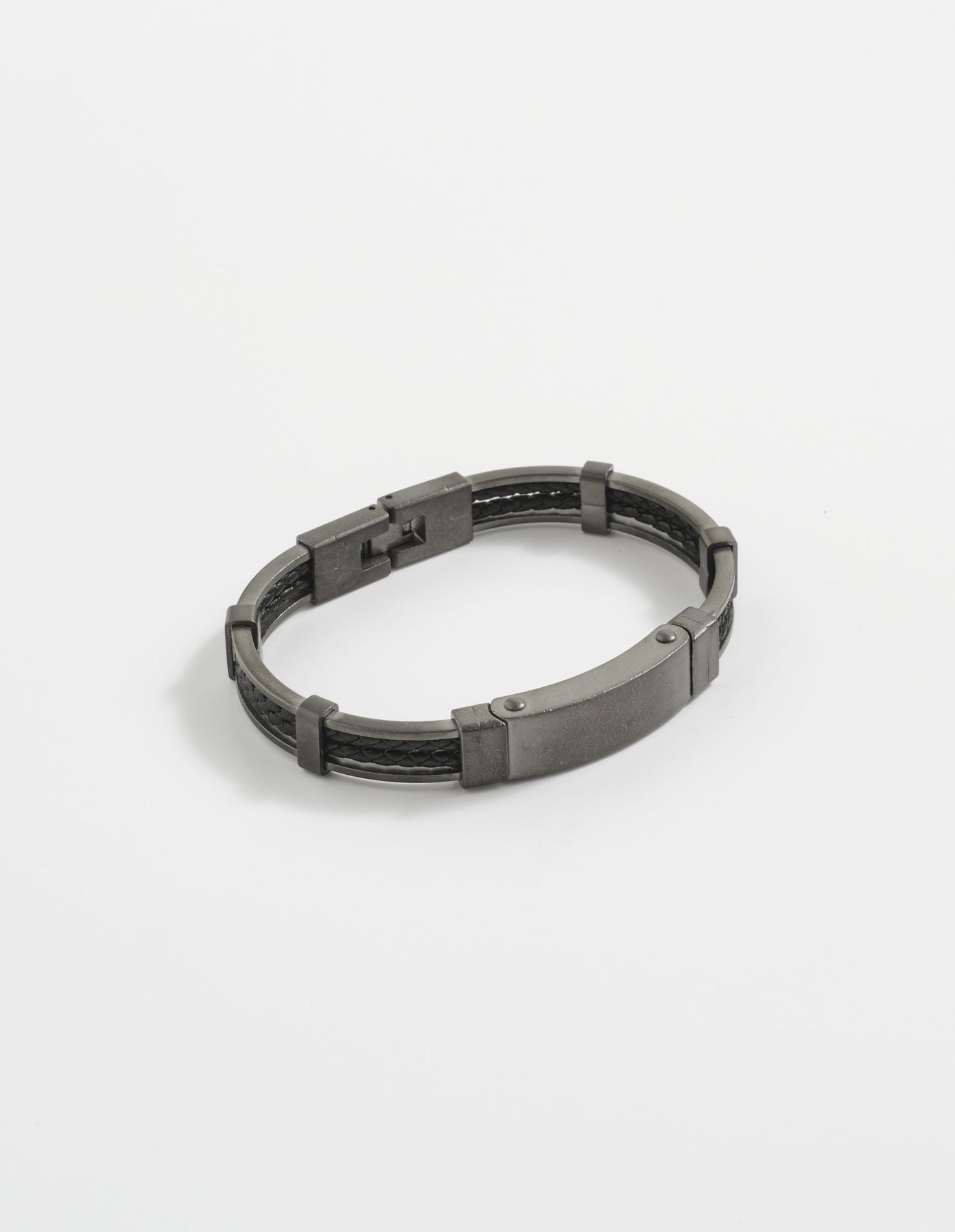 This Cudworth men's bracelet is the perfect blend of modern sophistication and rugged style. Crafted from ion-plated antique gun metal stainless steel, it features a robust black leather strap for a touch of masculine elegance. Ideal for both casual and formal occasions, it's designed to make a statement.