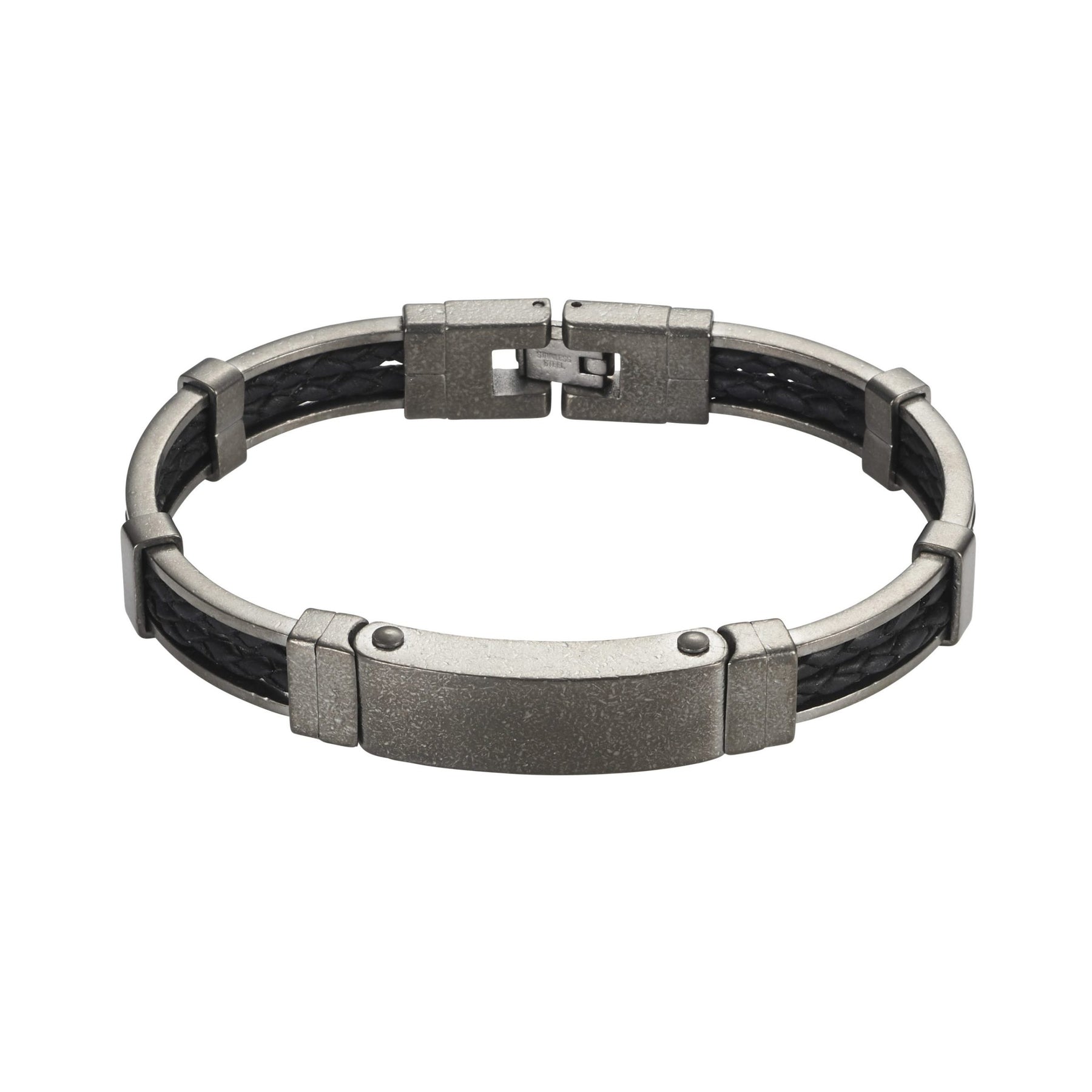 Ion Plated Antique Gun Metal Stainless Steel & Black Leather Bracelet