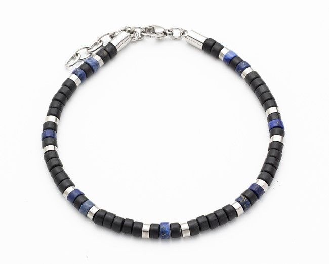 Unveiling the Savage - an exquisite bracelet from Cudworth that flawlessly merges rugged masculinity with refined elegance. Crafted using lustrous stainless steel, it features a series of discs interspersed with vibrant agate and lapis stones. This bracelet is a striking accessory that adds a touch of sophistication to any casual or formal ensemble.