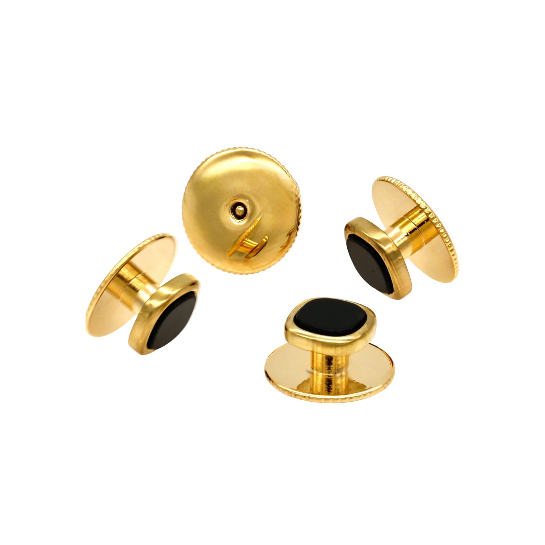 Add a touch of rugged elegance to your look with the Gold Black Cushion Screw Shirt Stud by Cudworth. This masculine piece combines the lustrous allure of gold with the bold intensity of black in a unique, cushion design. The screw shirt stud style ensures secure fit and comfortable wear, making it an ideal accessory for everyday sophistication or special occasions. Materials Used: - Gold - Black Enamel