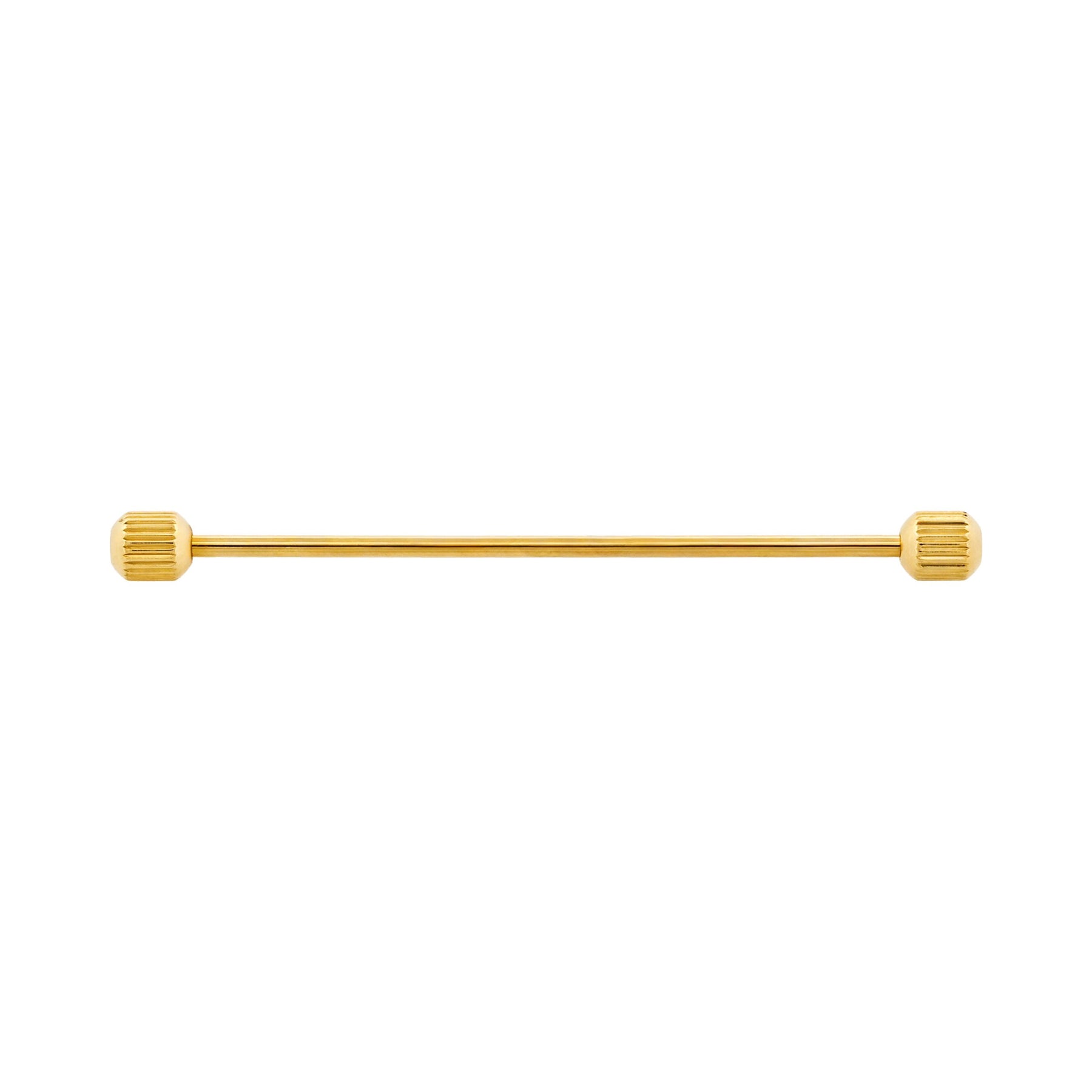 Crafted for those who appreciate the finer details, the Cudworth Gold Round Milled Collar Pole is the epitome of subtle sophistication. This sleek accessory commands attention not with flash, but with refined elegance, designed to enhance your shirt’s collar with an understated touch of gold. The smooth, cylindrical shaft is complemented by finely milled end caps that add texture and a tactile element to the piece – proving that even the smallest details matter. Measuring just right to offer a secure fit, this collar pole subtly elevates your shirt collar, maintaining its shape throughout the day with effortless cool.