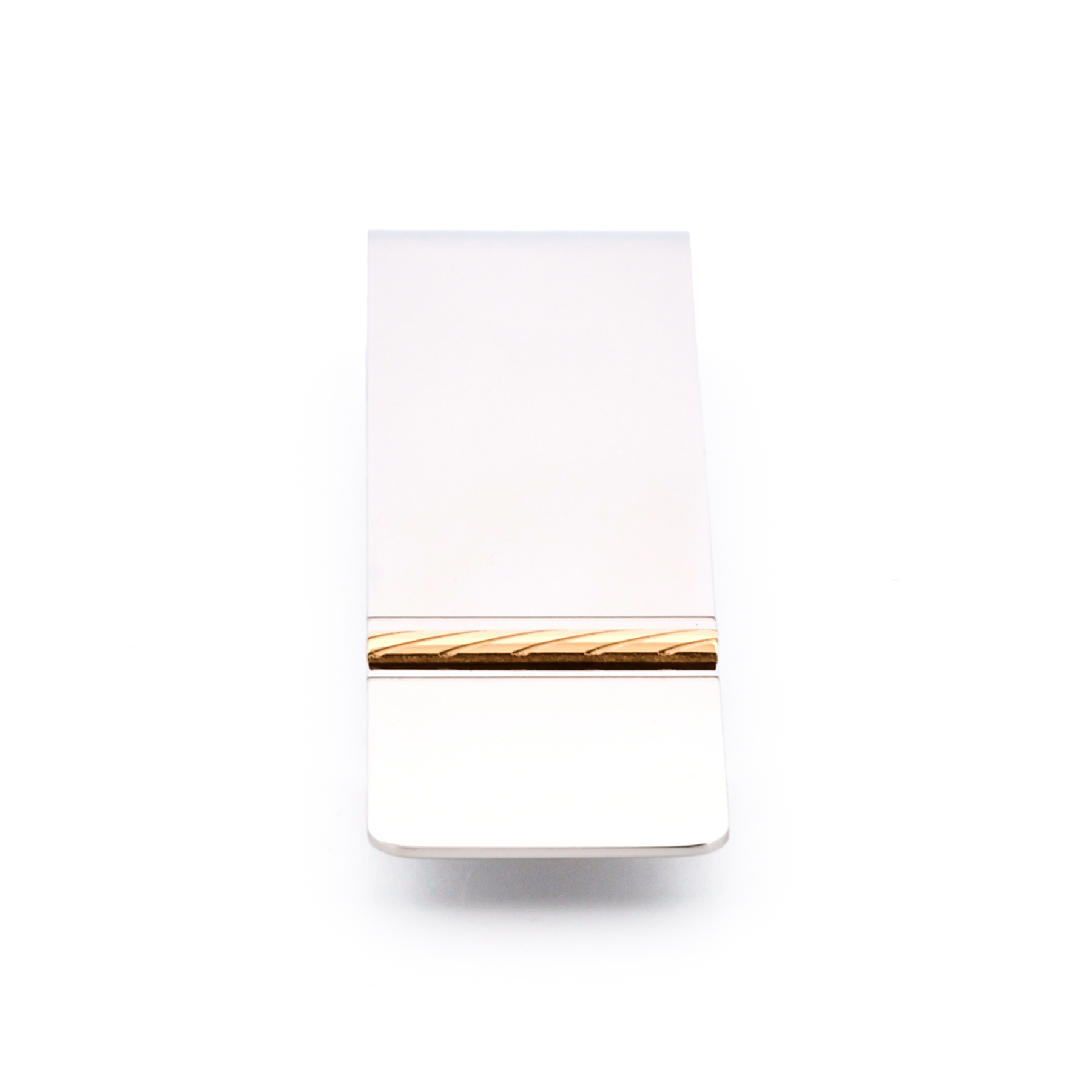 Elevate your style with Cudworth's Polished Stainless Steel Money Clip, featuring an Ion Plated Yellow Gold Rope Pattern. This sleek and sophisticated accessory is not only functional but also a symbol of elegance and refinement. Practical yet chic, it's the perfect companion for the modern gentleman who values both style and convenience.