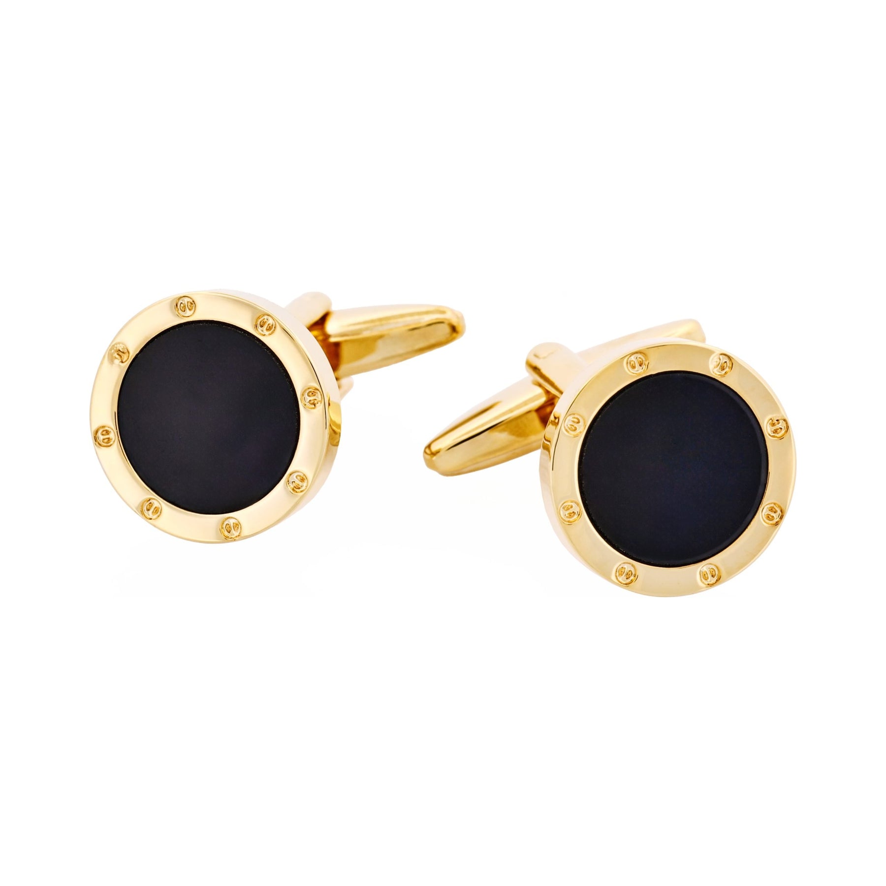 Introducing Cudworth's Gold Plated & Round Onyx Cufflinks with Screws, the perfect accessory for the modern gentleman. These high-quality cufflinks feature a stunning round onyx set in gold plating, with a unique screw design that exudes understated elegance. Ideal for both formal and casual occasions, they add a sophisticated touch to any ensemble.