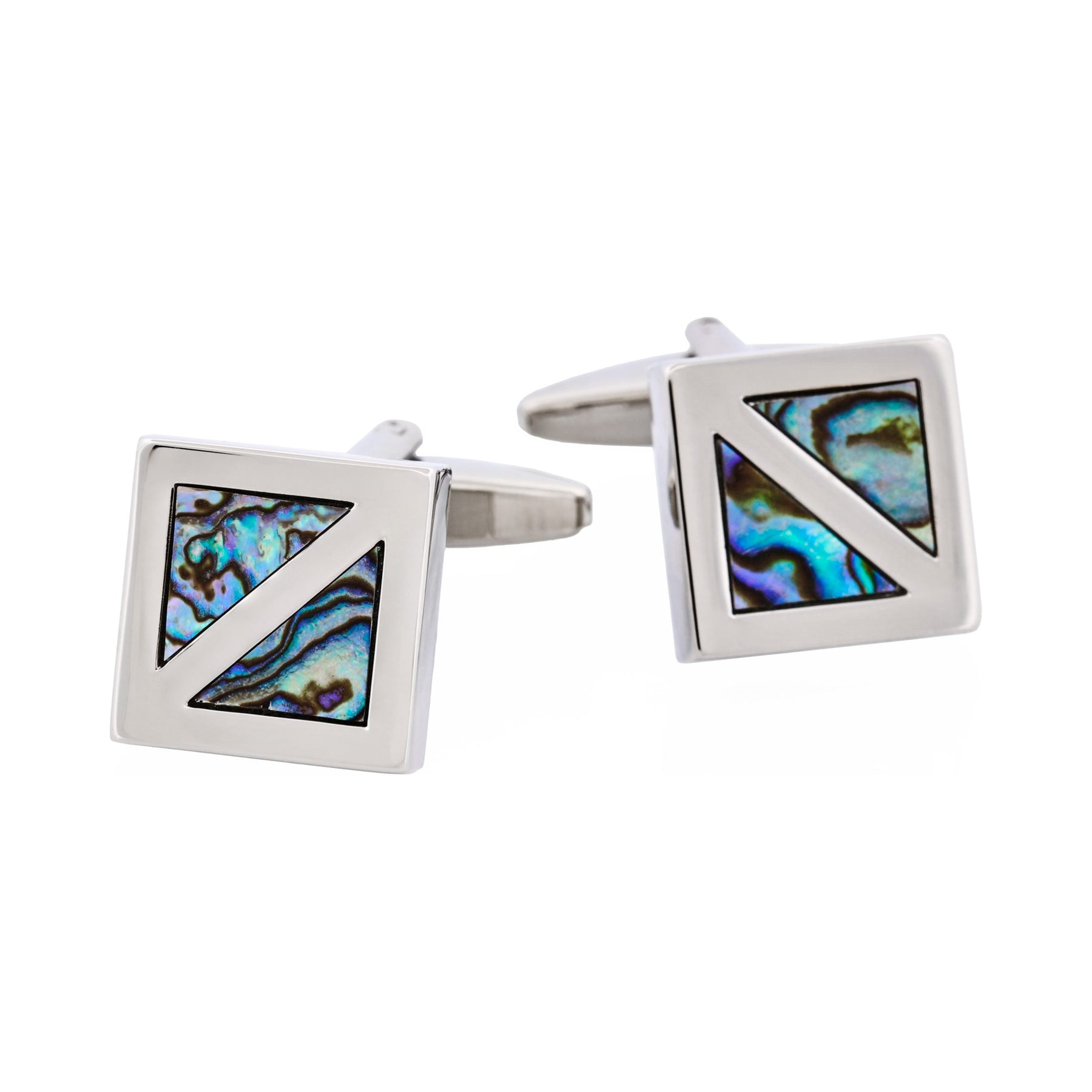 Polished Rhodium Plated Square with Abalone Inlay Cufflinks