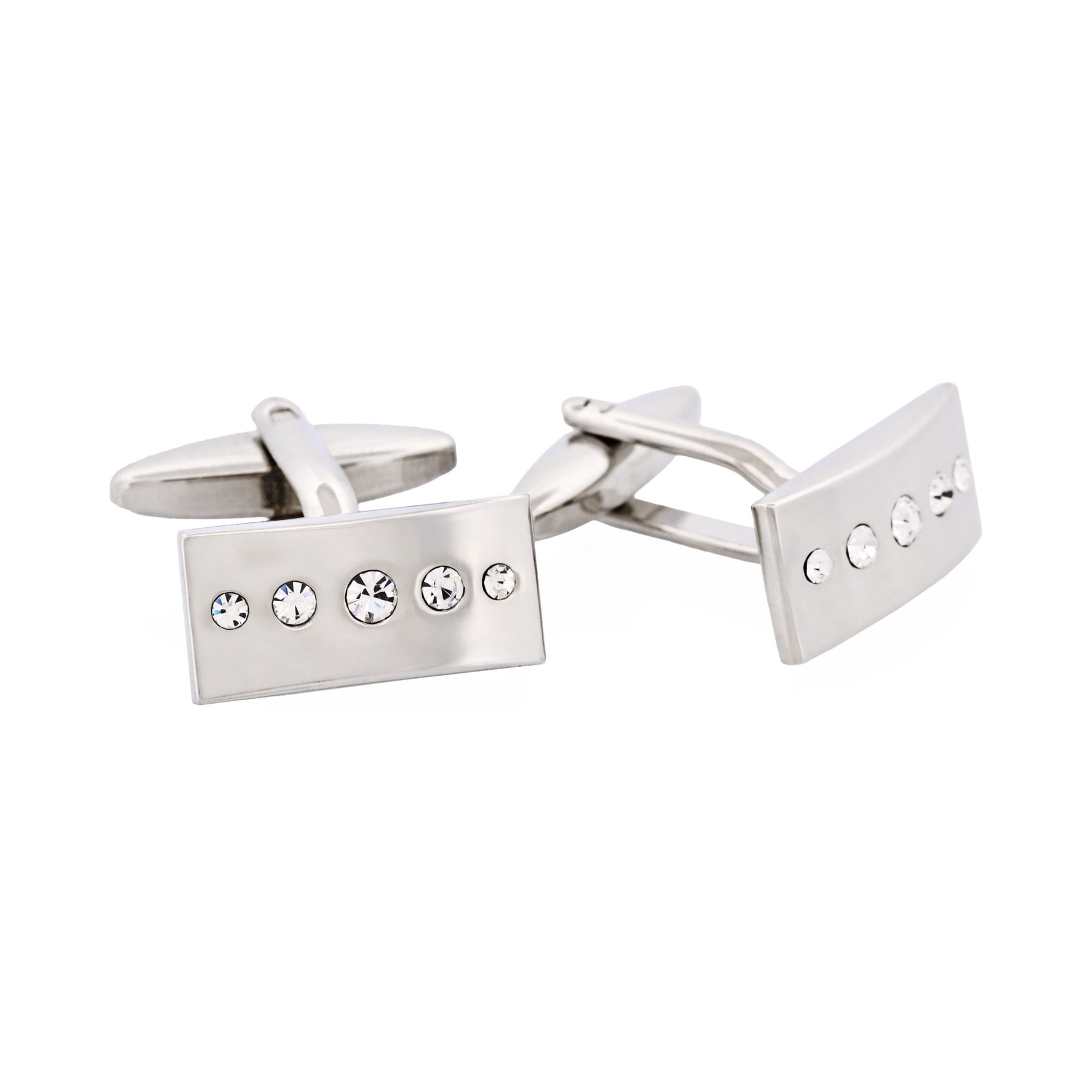 Polished Rhodium with Crystal Rectangle Cufflinks