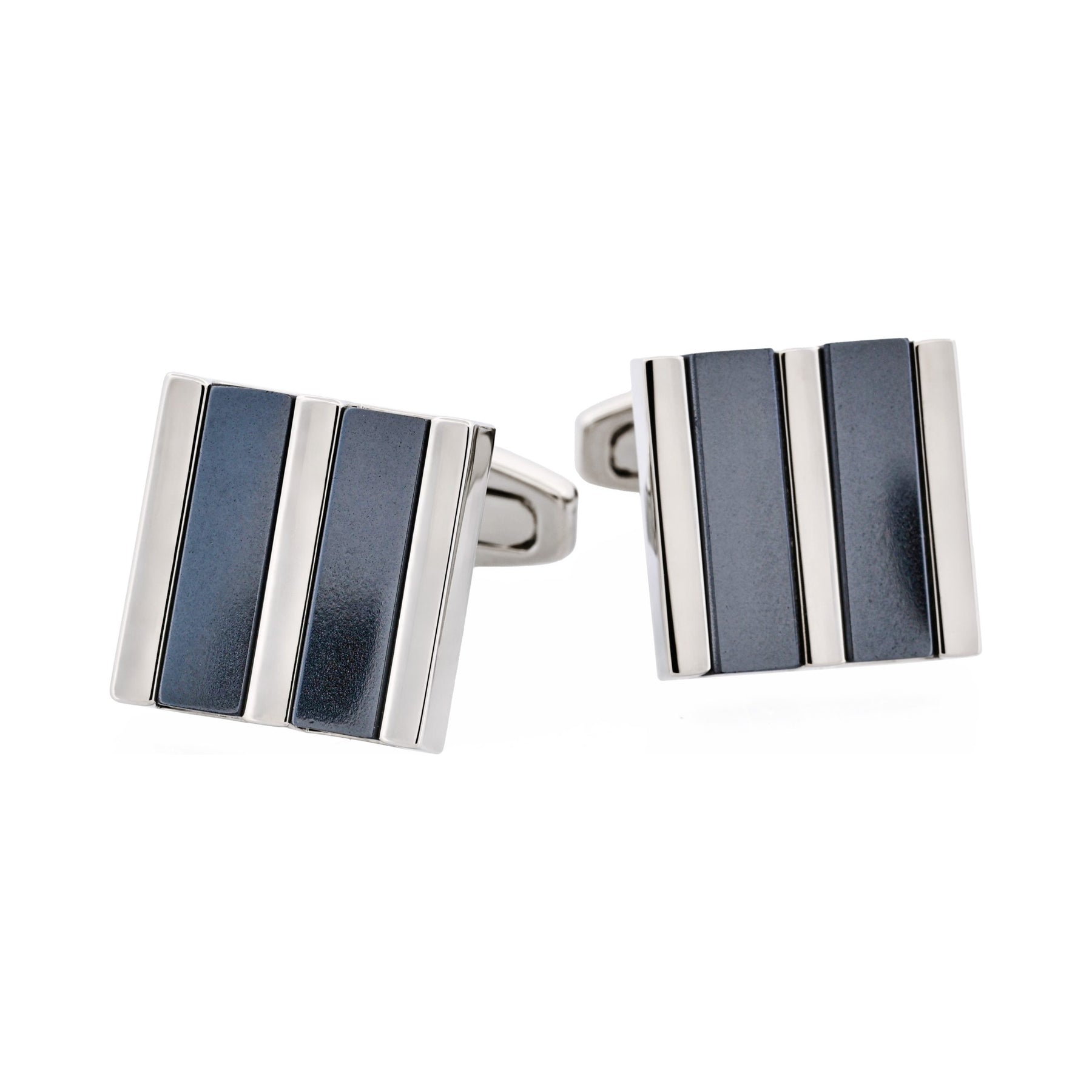 Add a touch of elegance to your professional or formal attire with these Cudworth Rhodium & Hematite Striped Cufflinks. These sleek cufflinks feature a unique striped design that combines the lustre of rhodium with the deep, metallic shine of hematite. Perfect for any man seeking to elevate his style subtly.