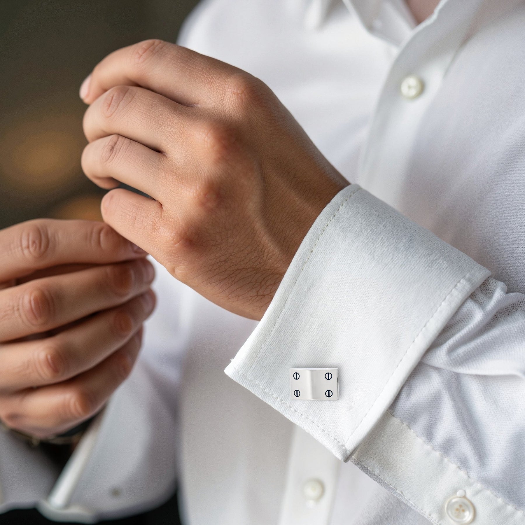 Rhodium Plated Rectangle Cufflinks with Screw Detail