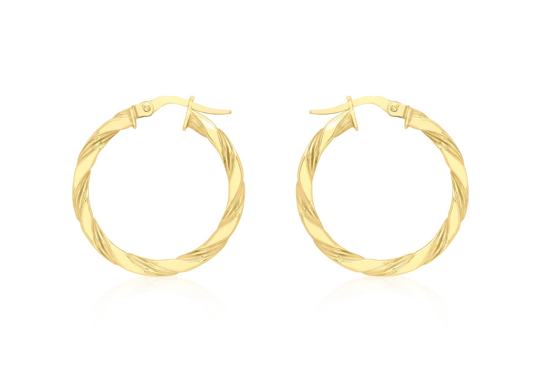 9ct Yellow Gold Flat Twist Hoops 20 mm