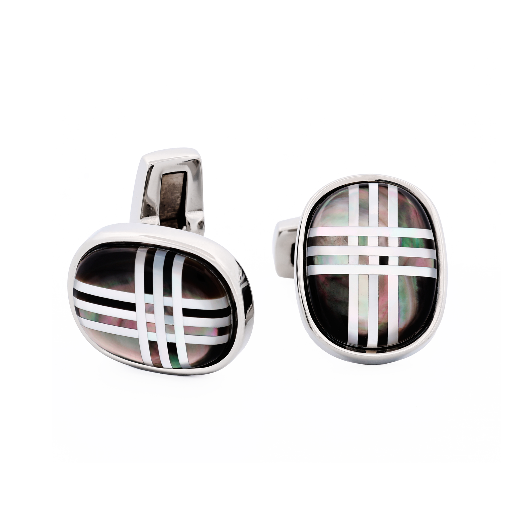 Elevate your formal attire with Cudworth's Polished Oval Stainless Steel & Grey Mother of Pearl cufflinks. Exquisitely crafted and showcasing a striking grey mother of pearl inlay, these cufflinks offer an understated yet sophisticated touch to any outfit. Perfect for the discerning gentleman who appreciates quality and style.