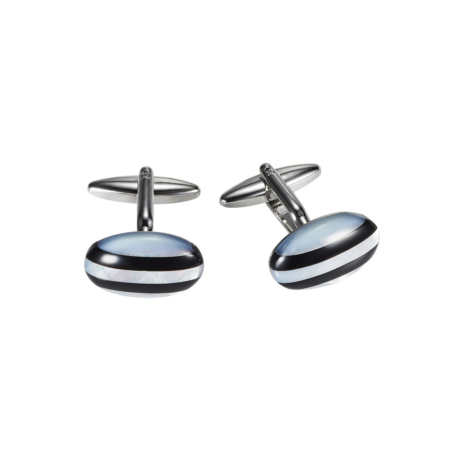 Add a touch of sophistication to your attire with these polished rhodium-plated oval curved face cufflinks from Cudworth. The beautiful mother of pearl inlay with onyx stripes creates a striking contrast, giving an elegant and modern look. Perfect for formal occasions or simply elevating your office style, these Cudworth cufflinks make an excellent addition to any man's accessory collection.