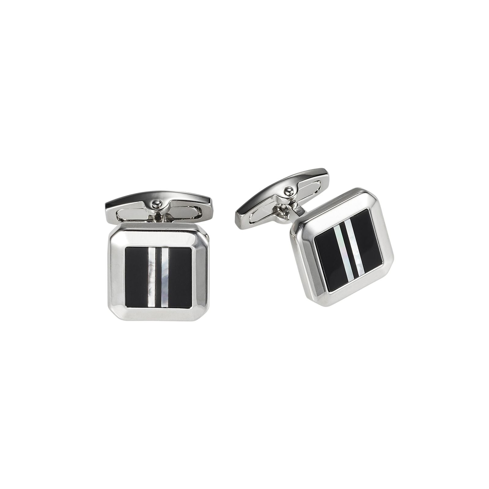Elevate your formal attire with these Cudworth cufflinks. Crafted from polished Rhodium, they boast a sophisticated square design featuring an elegant striped inlay of Onyx and Mother Of Pearl. The perfect blend of luxury and modern style, these cufflinks are the ultimate choice for any discerning gentleman.