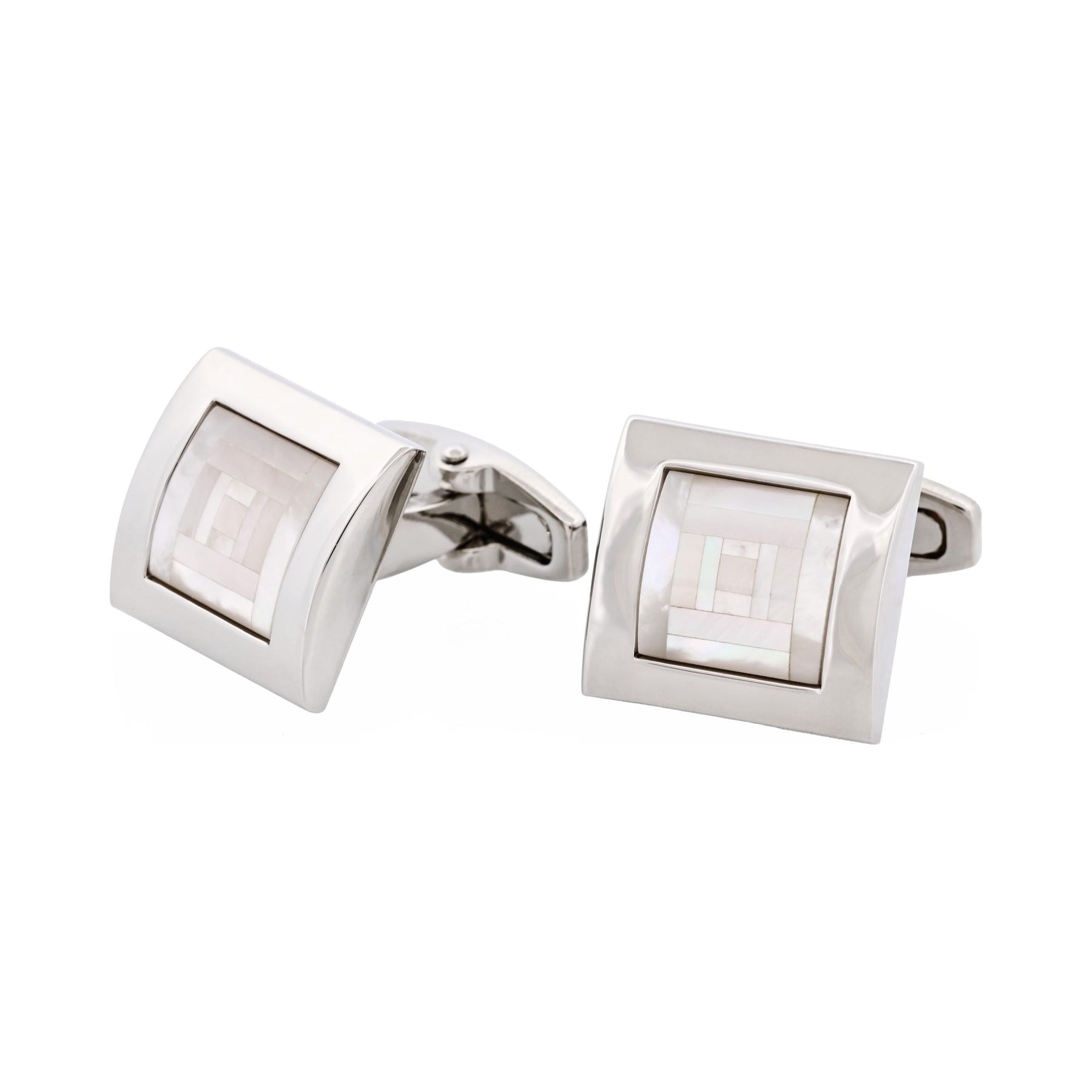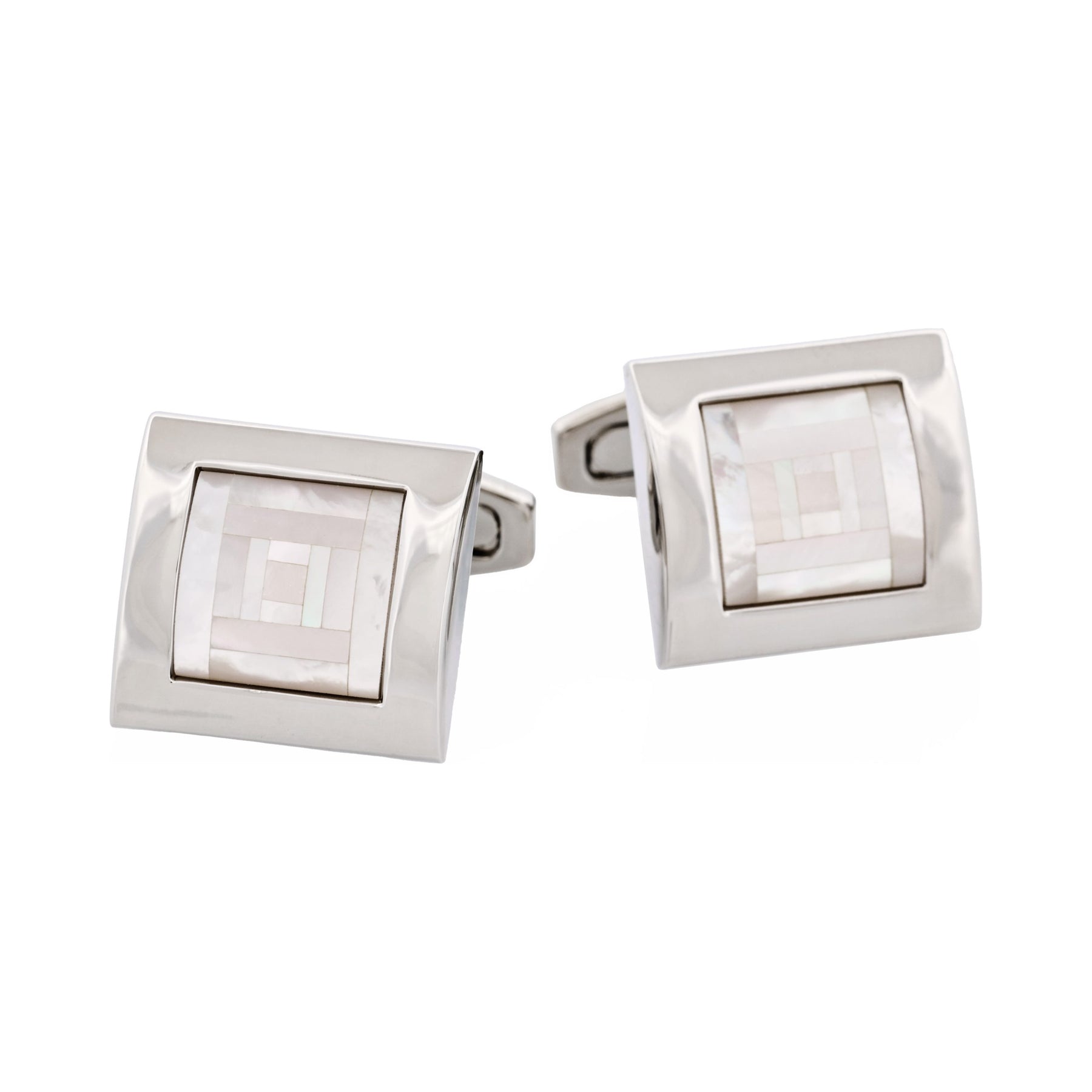 Introducing Cudworth's polished rhodium-plated square curved Mother of Pearl cufflinks. These handsome accessories exude a sophisticated elegance perfect for accentuating your formal attire. Boasting a luminous Mother of Pearl inlay on a squared, curved design, these cufflinks offer just the right balance of contemporary style and timeless charm. Elevate your sartorial game with Cudworth.