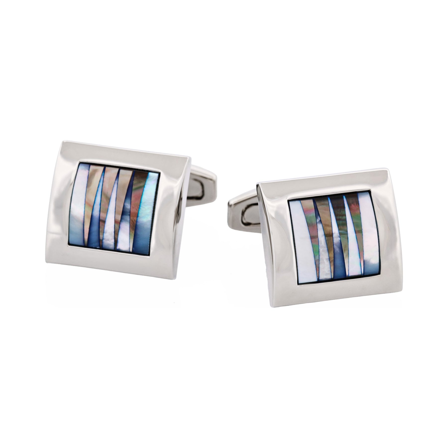 Elevate your style with Cudworth's polished Rhodium square curved cufflinks. Exquisitely adorned with a white and grey Mother of Pearl pattern, these cufflinks emanate a sophisticated yet modest charm perfect for any occasion. Whether it's business or pleasure, these cufflinks are the ideal accessory to showcase your refined taste.