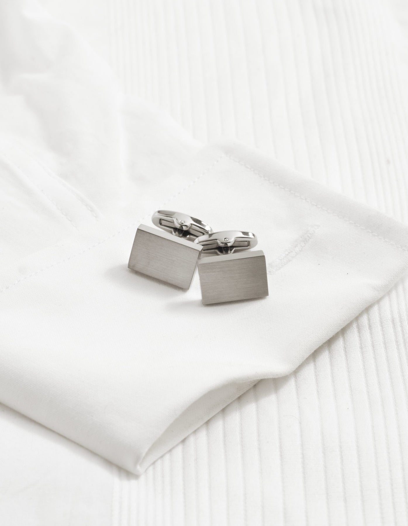 Add a sleek touch to your formalwear with Cudworth's Brushed Stainless Steel Rectangle Cufflinks. These silver-tone cufflinks exude simplistic elegance, featuring a brushed finish that subtly catches the light. Suitable for all occasions, these cufflinks are an excellent addition to any sophisticated man's accessory collection.